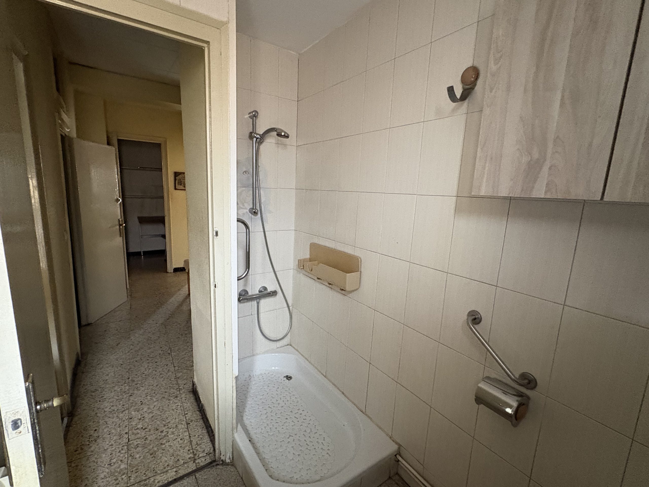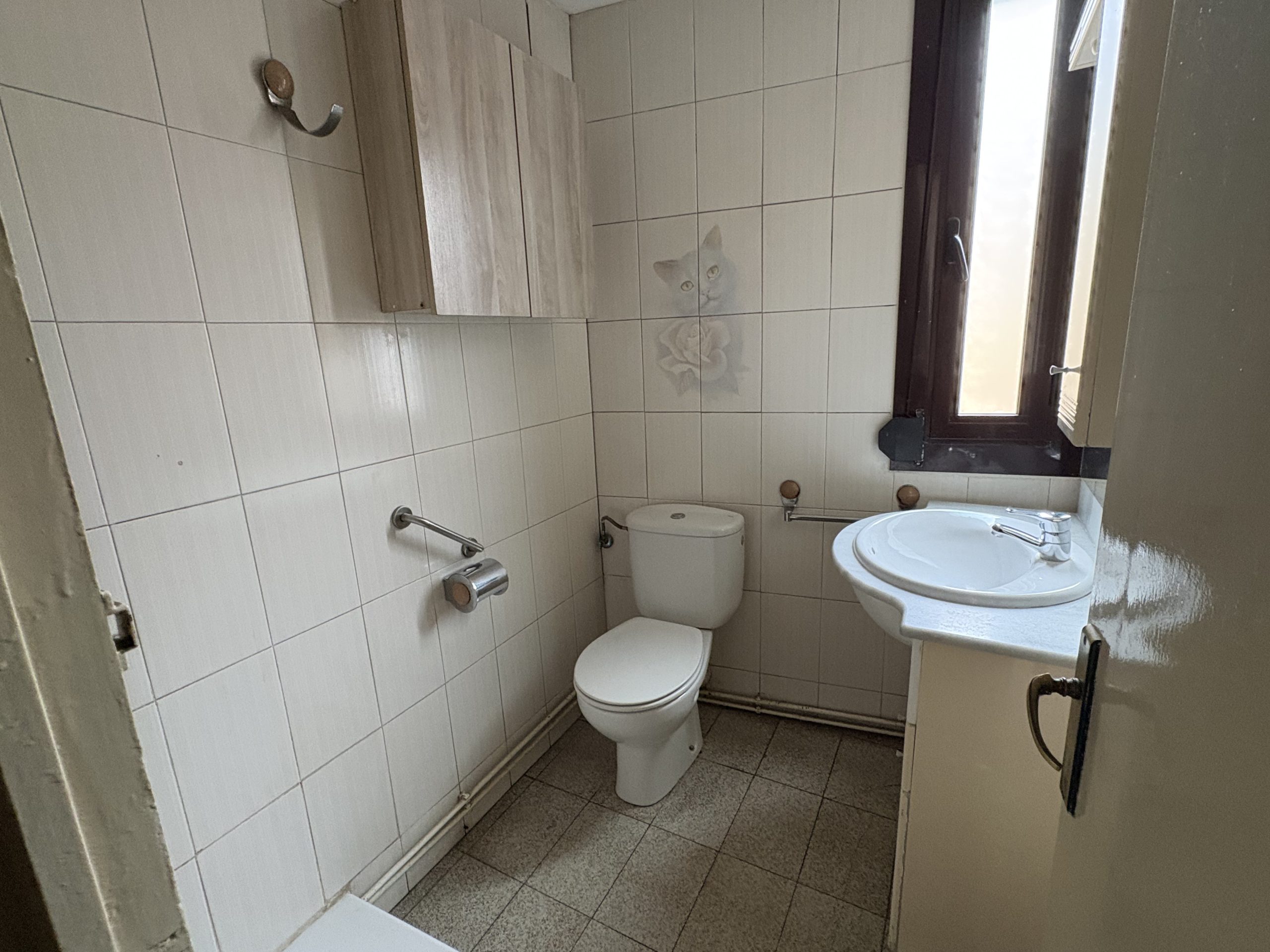 La vivienda dispone de un cuarto de baño de tres piezas con plato de ducha, funcional y con posibilidades de modernización dentro de una futura reforma.