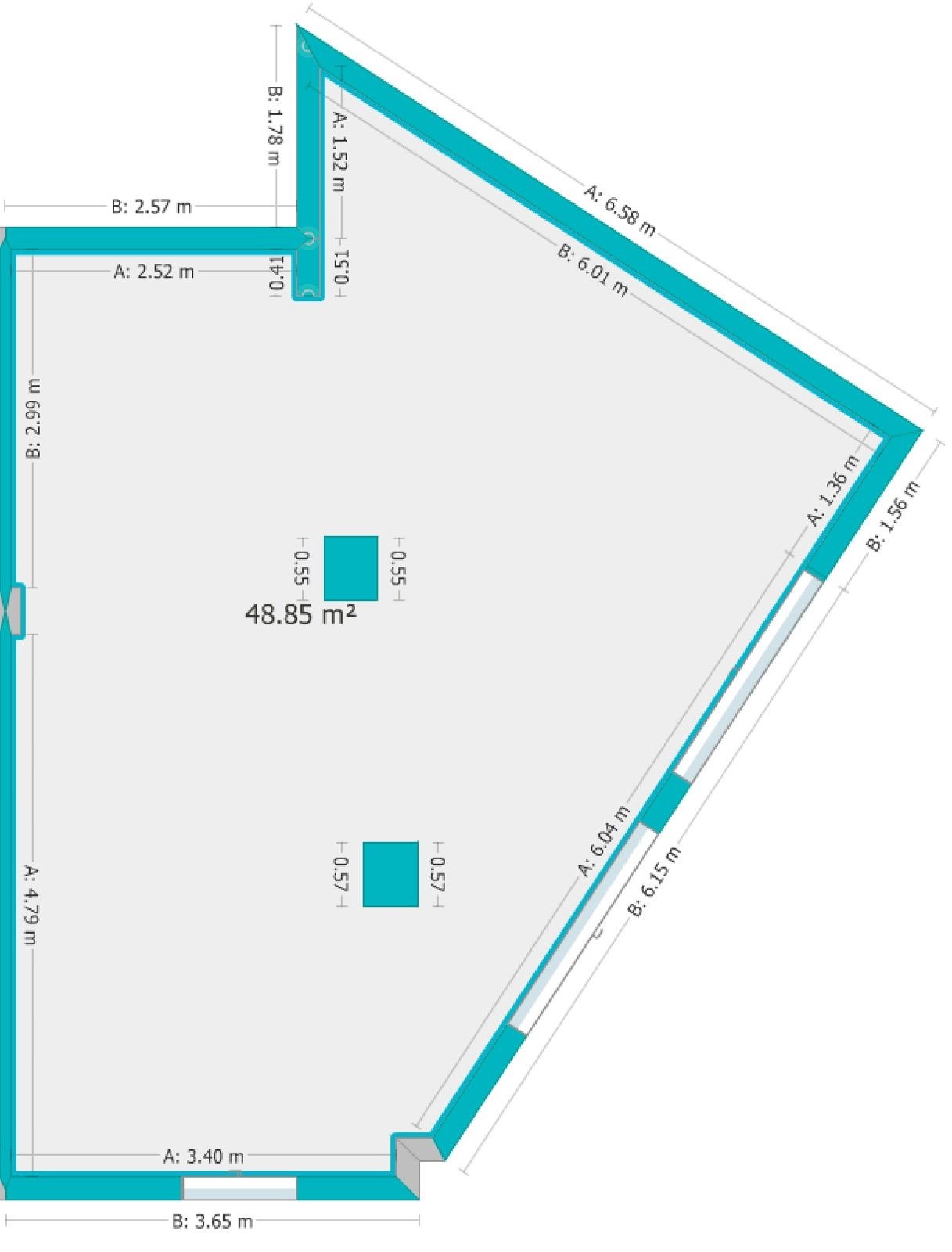 📏 El local cuenta con una superficie aproximada de 48,85 m², con una planta irregular y muy aprovechable que permite una distribución flexible y funcional según las necesidades del negocio. La configuración del espacio, con distintos tramos de pared de diferentes longitudes, facilita la creación de zonas de atención al público, áreas de trabajo, exposición o almacenamiento. Se trata de una fachada quebrada, repartida en varios tramos, lo que aporta mucha visibilidad desde distintos ángulos, ideal para rótulos, escaparates o imagen corporativa.